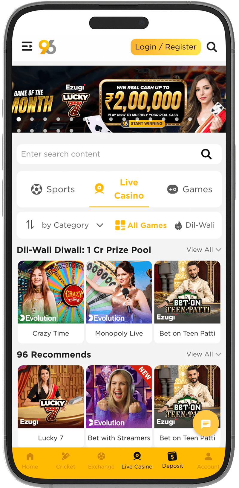 This is a program developed to simplify the process of playing via mobile devices. Our author has checked that this application is available legally in India. The functionality of the program includes sports/e-sports betting, slot machine games, account replenishment/withdrawal of winnings, participation in promotions and tournaments, as well as communication with technical support via online chat. Our team checked it does not matter whether the user installed 96in on Android or iOS, the programs are identical. The design and interface are perfectly adapted for mobile devices.