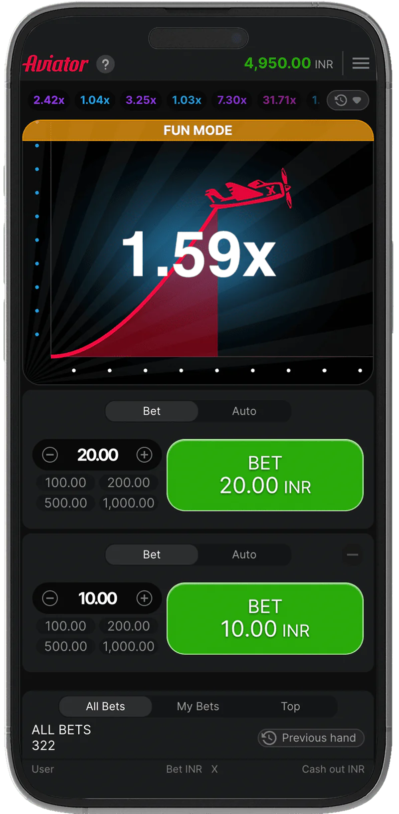 Playing 96in Aviator in the App