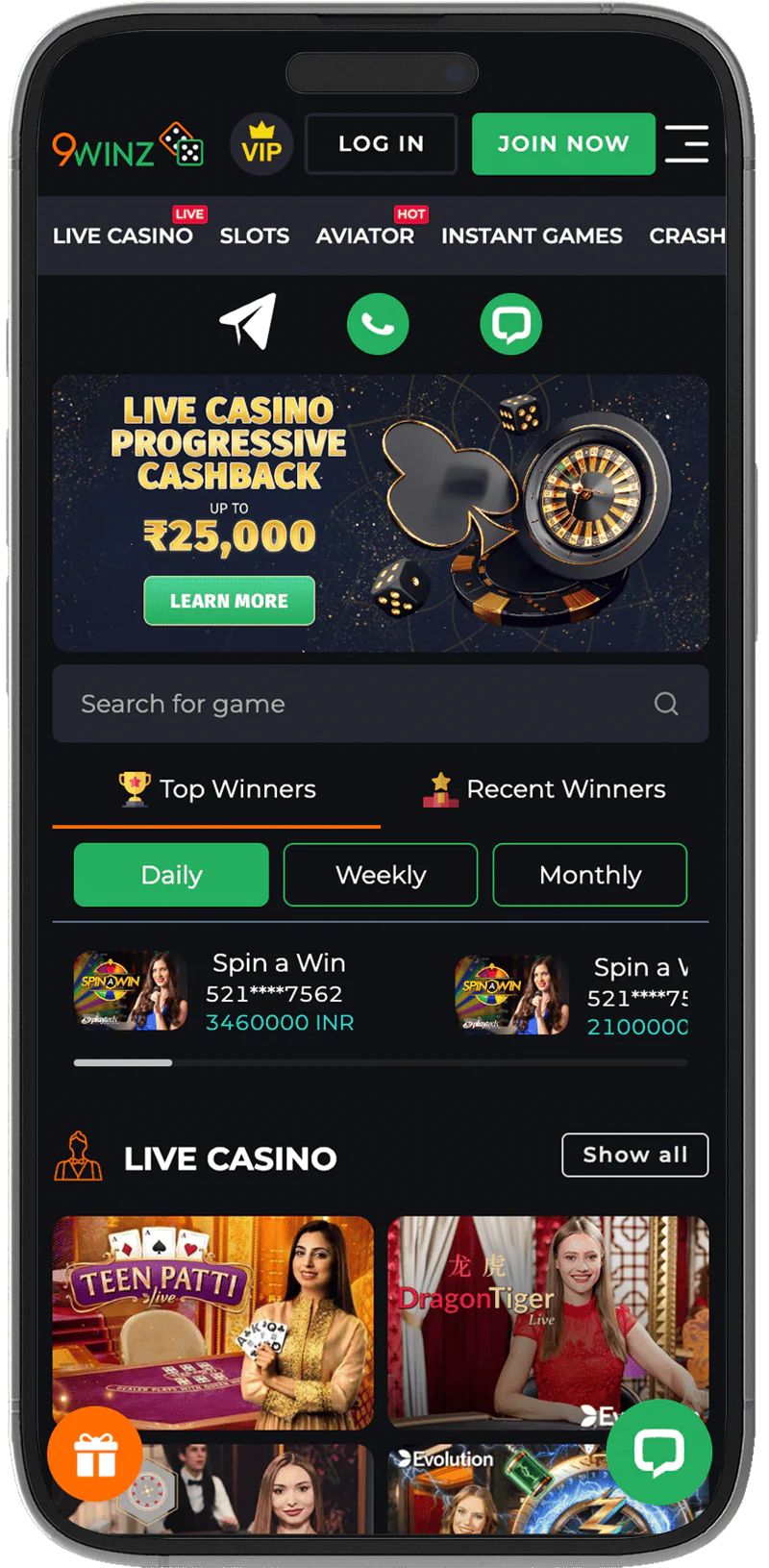 Due to good optimization highlighted by our author Amir Chauhan, you can 9winz download on almost any device; stable operation is guaranteed even with low internet speeds. Indian players can activate a 10% cashback in the app for Aviator and get back up to ₹10,000 of lost bets per week. After signing up, you will also be able to activate a bonus on the first 4 deposits – 450% up to 300,000 Indian rupees.