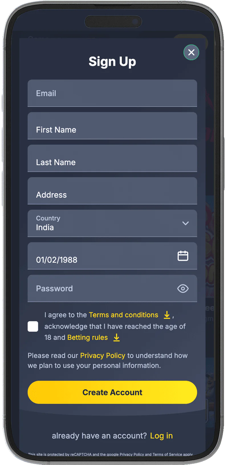 Open the Bettilt app and sign up or log in.