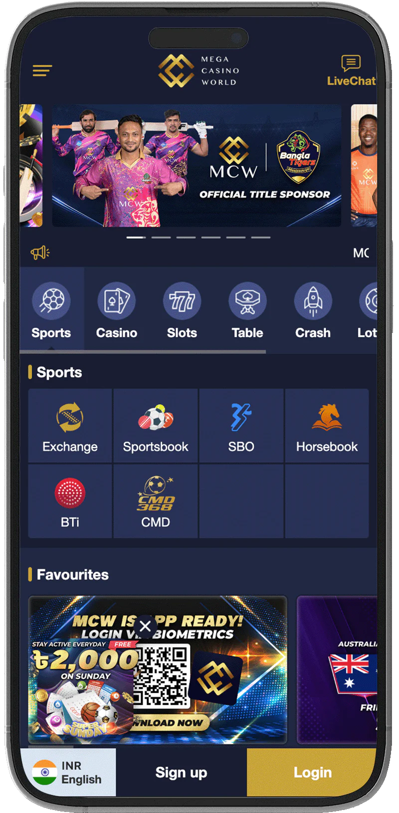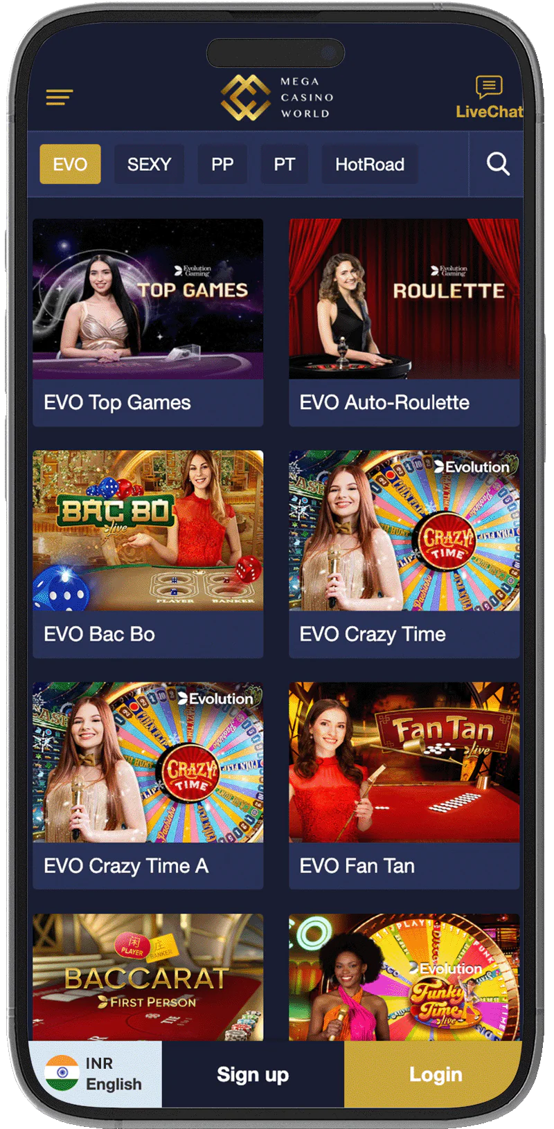 No. There are no exclusive rewards for Indian players who download Mega Casino World app. However, they are eligible for the first deposit bonus of up to ₹10,000.